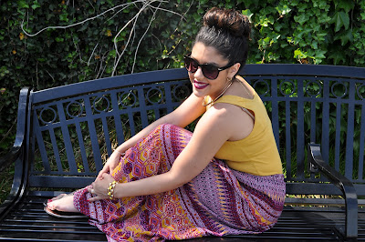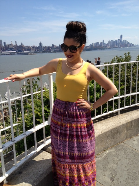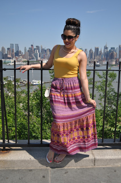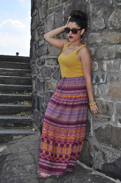 I found this printed maxi skirt yesterday and I really fell in love with the print and colors. I thought that it would be perfect for today. It’s my first time wearing a maxi skirt. I wanted to bring out the mustard in the print so luckily I found this tank and it was the last one in my size. I wasn’t lying in my previous posts when I said that I swear by these Target tanks! They really are the best in my opinion.