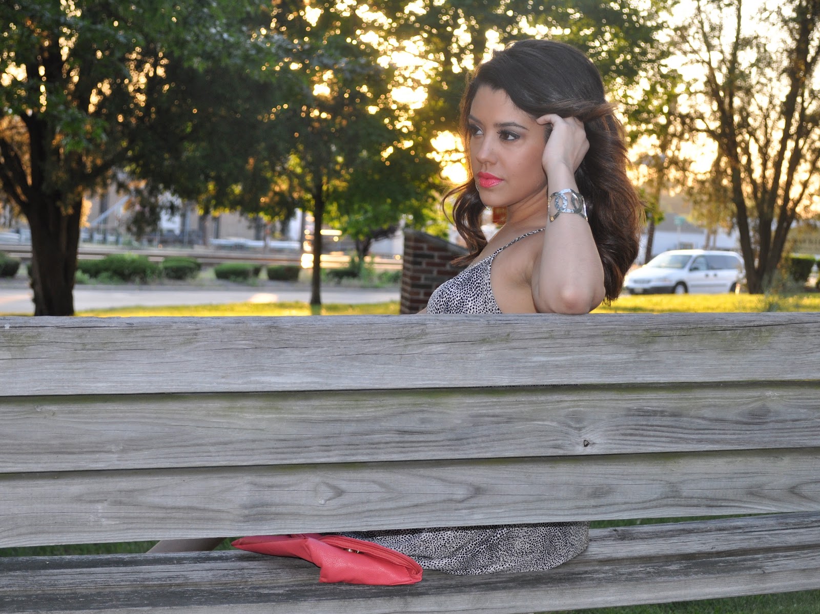 luv the dress on u dear, luv how your lip color matches your bag so chic