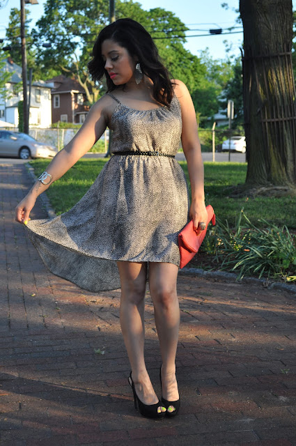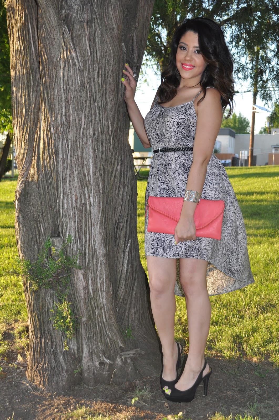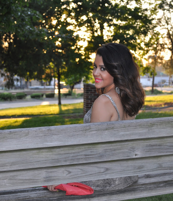 These peep toe sling backs are a little over a year old but they went perfect and were more comfortable than I remembered. I didn’t want to go with a black clutch, so to add a nice pop of color I opted for this coral one. And to go a little further I went with coral lipstick, one of my favorites from MAC. I love adding a little pop of color to an outfit, especially when it’s not expected. I think it went really well. My nails are still Neon Melon so that also added more color. I didn’t have time to change them.
